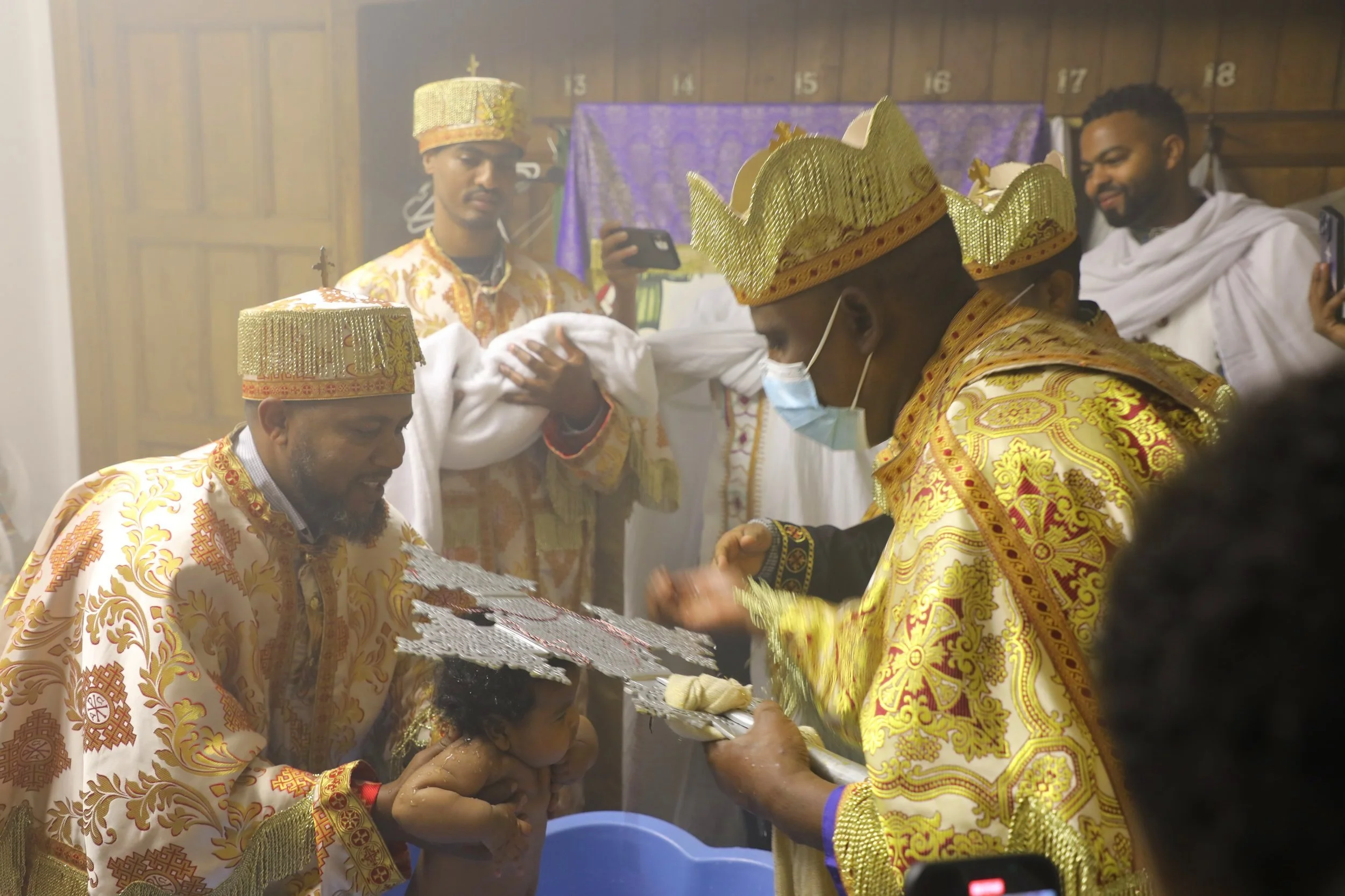 The Sacrament of Baptism is a profound and essential rite through which we receive the grace of childhood from God, being baptized in water by a priest to be reborn of the Holy Spirit. In the Ethiopian Orthodox Tewahedo Church, baptism is performed in the name of the Father, the Son, and the Holy Spirit, and is administered only once, symbolizing the believer’s permanent entry into the Christian faith. Baptism occurs for males at 40 days old and for females at 80 days old, reflecting the biblical significance that Adam entered the Garden of Eden 40 days after creation and Eve entered 40 days after Adam.